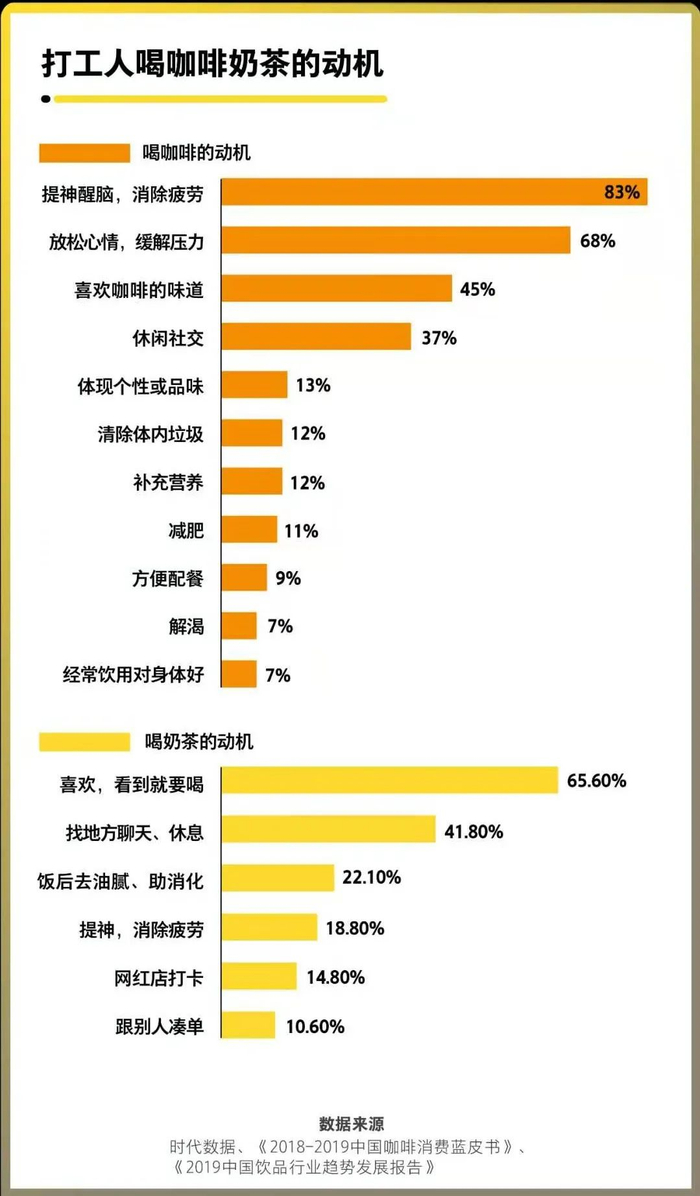 左手咖啡,右手奶茶,打工人上班靠它续命,下班朋友圈靠它社交。嘴上说着脱发失眠,要养生锻炼,转头手持咖啡杯晒照打卡。