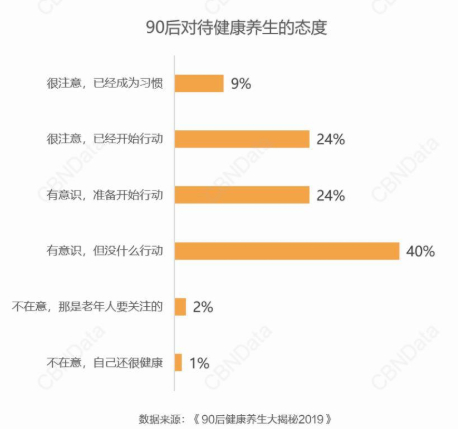 咖啡奶茶的消费可谓是随时、随地、随心。但作为新消费“食”代的90后来说,养生似乎和放纵是齐头并进的。根据CBNData发布的《年轻人养生消费趋势报告》显示:九成以上的年轻人已有养生意识,超过50%的90后正准备或已经开始养生行动。