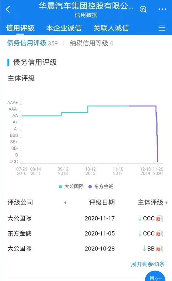 冰冻三尺非一日之寒。债券违约前后,东方金诚、大公国际纷纷下调了华晨集团的信用等级。