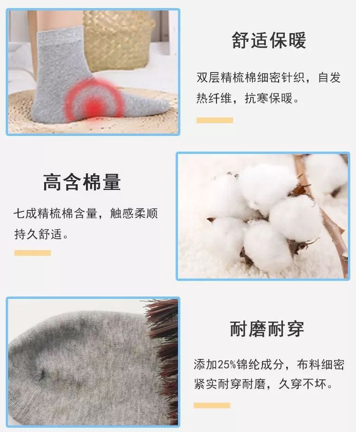 精梳棉保暖效果是普通棉袜的3倍