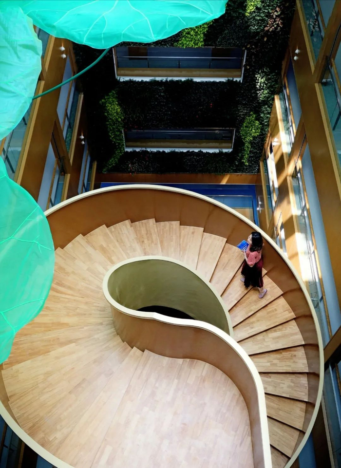 赵朱木兰图书馆落落大方,从外看隐透青光的灰白色蕴含着书本带来的平静。而如罗马斗兽场般的图书馆则沉稳厚重,隐现出久经风霜的气度。