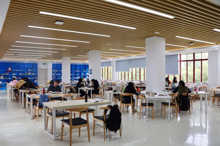 学校图书馆总面积1.9万平方米,阅览室座位数2894个,拥有纸质图书162万册、电子图书169万册及各类数据库60个。图书馆设有信息共享空间、书库、建桥文库、视听室、培训室、咖啡室、亲子阅览室、采编加工区等主要功能区域,每周开放时间95.9小时,自修室实行全年无休365*24小时开放。