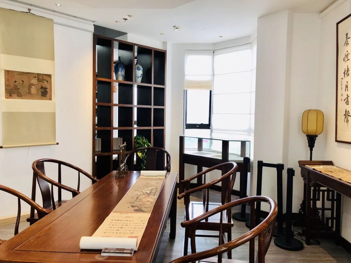 上海思博职业技术学院图书馆以三位一体的格局呈现出独特的海派气质:全实木的海派家具、石库门式海派装修风格营造了海派物理空间;放置于精致的楼中楼内的海派特藏组成了海派实体空间。