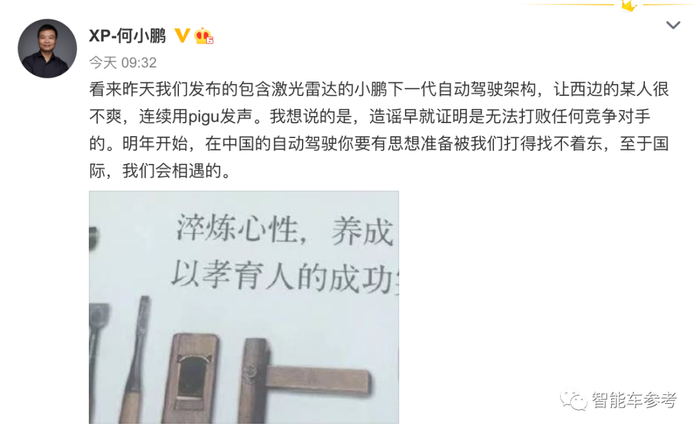 另一边,小鹏汽车董事长何小鹏也不点名回怼,并且放话要让那个“西边的人”被中国自动驾驶打得找不着东。
