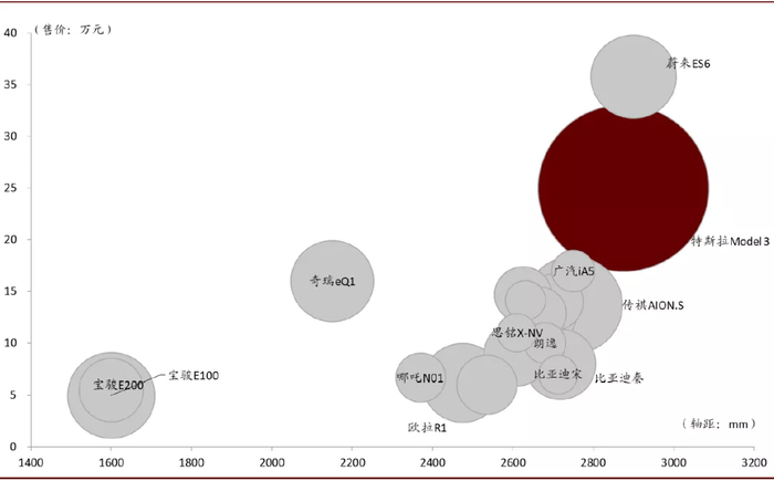 图表: 1H20纯电动车销量Top20气泡图