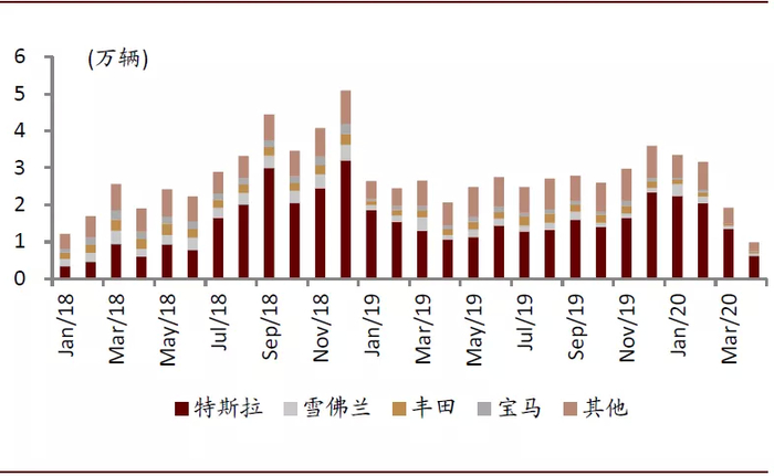 图表: 特斯拉在美国纯电动车市场呈现统治地位