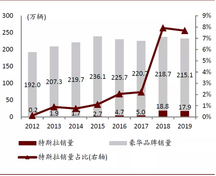 图表: 北美市场特斯拉在豪华品牌中的渗透率