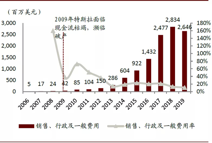 图表: 特斯拉销售、行政及一般费用