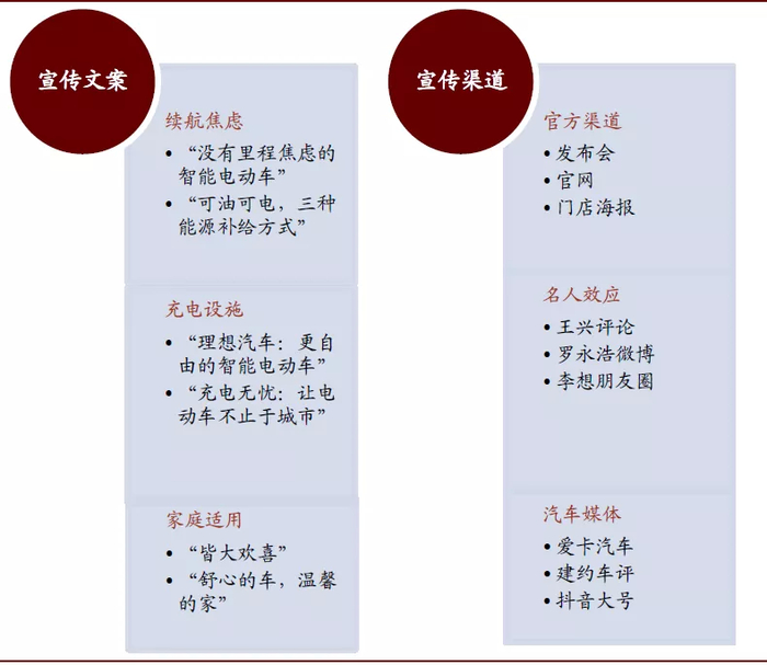 图表: 理想宣传文案、宣传渠道梳理
