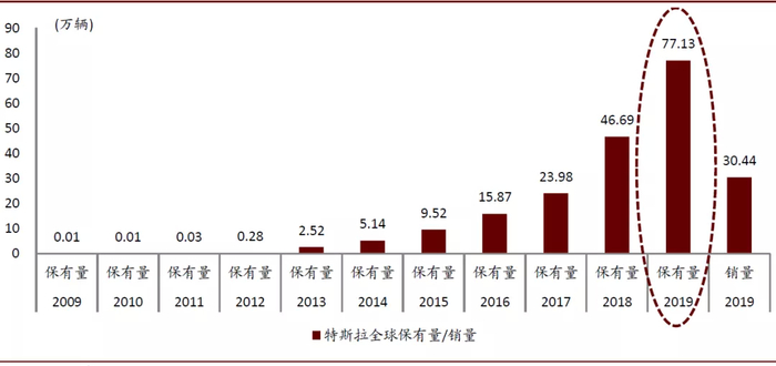 图表: 特斯拉全球保有量、销量图