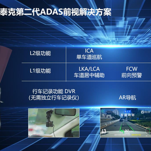 第二代ADAS前视解决方案性能表现在视觉感知算法与摄像头规格上得到大幅度提升。新一代ADAS前视解决方案大量采用CNN等深度学习算法,得以在对行人,二轮车,道路结构信息,交通标识以及交通灯识别上大幅度提升识别能力和识别精度;新一代ADAS前视解决方案升级到100度视场角(后续会继续升级到120度),感光芯片提高到300w像素,超过1080p高清,