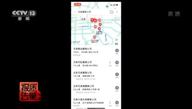 除了网络搜索平台上充斥着各种名目的兄弟搬家公司以外,记者还发现,在一些地图软件的位置搜索中输入搬家公司,同样可以出现大量名称中有兄弟字样搬家公司的位置标记。记者再次来到北京四方兄弟搬家公司实际经营地所在的村庄,通过地图搜索周边的搬家公司,出现了几十条结果,经过粗略统计,在10公里范围内名称标记中带有兄弟字样的搬家公司有19家,30公里范围内这样的公司有近40家,而这些标记大部分都留有可以拨通的联系电话,但记者按照地图随机走访发现有一些地址的标记是根本无法找到的。