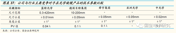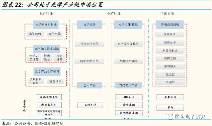 ◾ 上游行业:主要包括光学原材料制造、光学加工设备制造以及相关的生产辅料等产业,公司主要合作企业包括成都光明光电、湖北新华光信息材料有限公司、浙江森永光电设备有限公司等。
