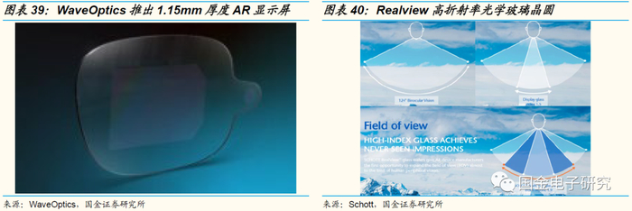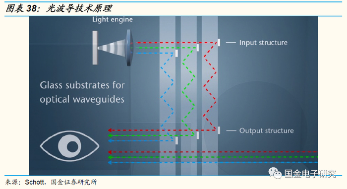 ◾ 光波导技术成为AR设备实现“眼镜化”的必选光学方案,高质量玻璃晶圆需求增长。要让 AR设备实现更接近现实的眼镜形态,需要用到玻璃镜片光波导技术。光波导元件的玻璃基底需要采用高质量的玻璃晶圆制作,目前德国肖特集团、美国康宁等全球知名企业都在为 AR光波导市场研制专用的玻璃基底,并不断增大玻璃晶圆尺寸以降低单位生产成本。
