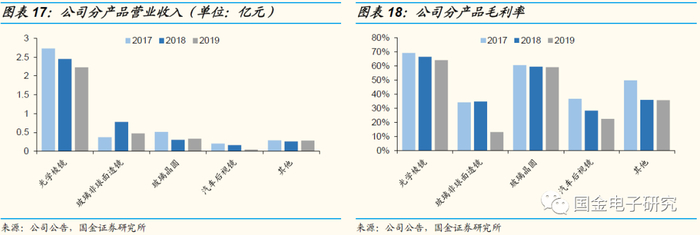 ◾ 2018、2019年公司营收为3.95亿元、3.34亿元,下滑0.15亿元、0.61亿元。1)公司长条棱镜产品2018、2019年营收下滑0.42亿元、0.31亿元,同比下滑20%、18%,主要系:①公司下游客户AMS预期未来苹果智能手机出货量下降、减少了采购订单,②AMS良率提升、需要消化部分前期备货,③2019年AMS供应链管理要求提高,产品备货量从2个月调整为2周。2)公司成像类玻璃非球面透镜产品2019营收下滑0.3亿元,主要系下游终端客户手机产品前置摄像头设计变更,新款产品没有使用公司的玻璃非球面透镜。3)公司玻璃晶圆2018年营收下滑0.21亿元,主要系AR/VR产品需求下滑所致。