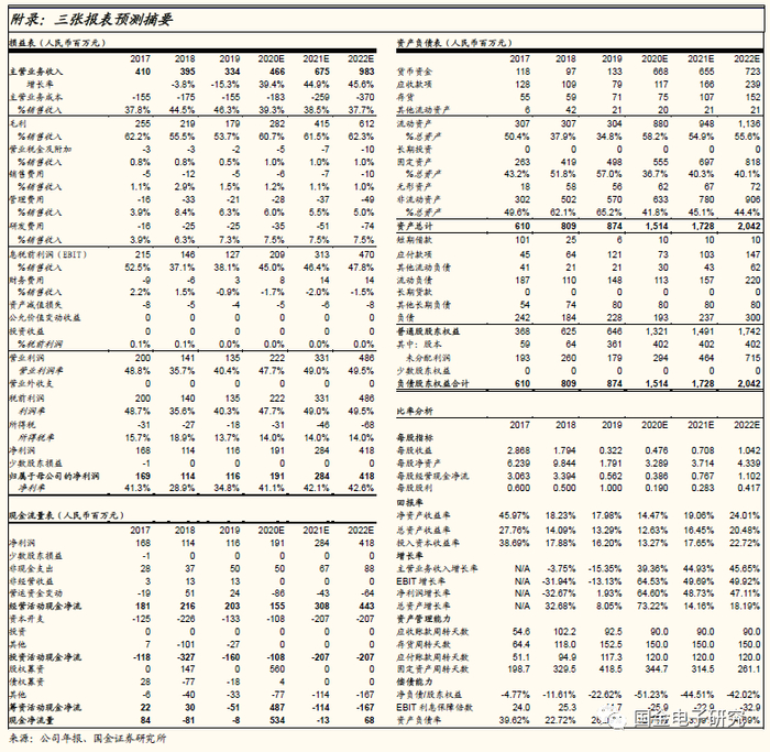 ◾ 预计公司2020~2022年归母业绩为1.9、2.8、4.2亿元,同增65%、49%、47%。给予买入评级,目标价42.5元(60*2021EPS)。