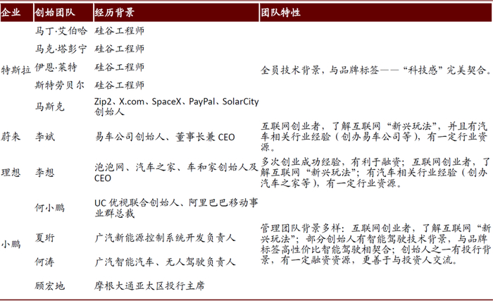 图表: 特斯拉、蔚来、理想、小鹏创始团队梳理