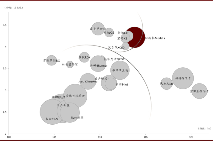 资料来源:中汽协,汽车之家,中金公司研究部注:圆圈半径大小代表销量