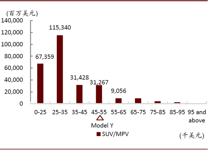 图表: 美国SUV市场规模分布(2019)