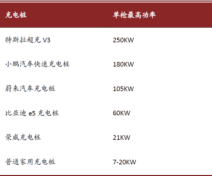 快充技术国内领先但未做到极致,与特斯拉对标仍有提升空间。目前特斯拉V3超级充电桩单枪最高功率可达250kW,而小鹏汽车目前推出的快速充电桩最高功率为180kW,我们认为若公司想打上科技感标签、与特斯拉对标,在快充技术方面仍有一定的提升空间。