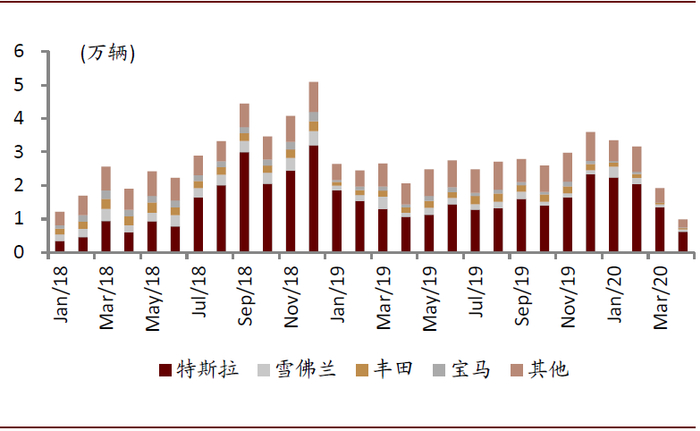 考虑到车牌价格,特斯拉在限牌城市将直接与中端品牌竞争。考虑国内限牌城市对新能源车的上牌政策,特斯拉则体现出了高性价比:以上海为例,Model 3补贴后售价约为25万元,上海燃油车车牌拍卖价格约9万元,扣除燃油车车牌成本,特斯拉裸车价格则等同于价格约为16万元的燃油车。从上牌量数据来看,特斯拉的销量集中分布在发达及限牌城市,我们认为限牌城市新能源汽车牌照成本较低、发达城市和限购城市新能源汽车充电桩铺设较广均是主要原因。因此我们认为在限牌城市中,特斯拉将直接影响大众、丰田等中端品牌的市场。