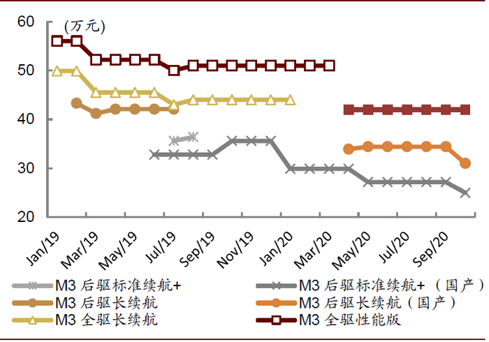 图表: 特斯拉Model 3各配置在中国的售价
