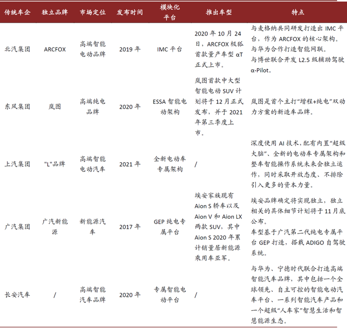 图表: 各传统车企的新能源独立品牌拆分运营