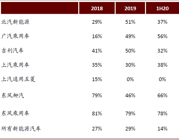 图表: 各传统车企新能源汽车ToB销售比例