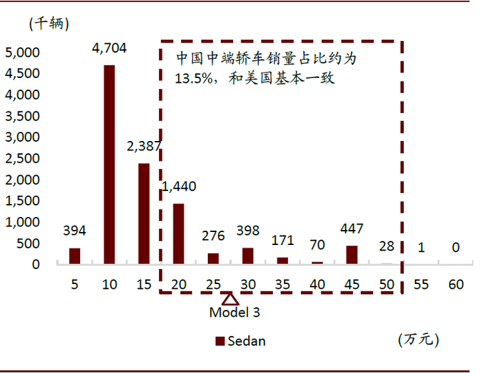 轿车市场:中级轿车在美是细分市场,Model 3 在华优势弱于美国