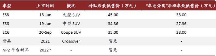 图表: 蔚来汽车车型概况