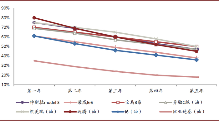 图表: 各车型保值率对比