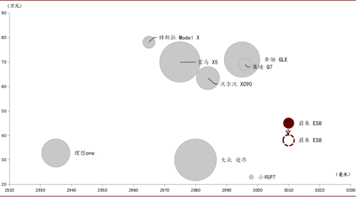“车电分离”带来裸车价格直接下探,挤占中端及入门级高端市场。蔚来汽车已于2020年8月推出Baas(Battery as a Service)服务,即消费者可以只购买裸车(无电池),后期每月支付一定费用以租赁电池,这使得购买价格直接下降,有利于采购平价。Baas方案可使得ES6补贴后裸车价格直接下探至27.4万元,我们认为ES6将挤占部分20-30万元中端市场份额(特斯拉 model 3、奥迪 A4L、别克君越、大众迈腾、丰田亚洲龙);可使得ES8裸车价格直接下探至38万元,我们认为ES8将以高性价比、长轴距优势挤占部分豪华车市场(奥迪Q7、奔驰GLE、沃尔沃XC90)。