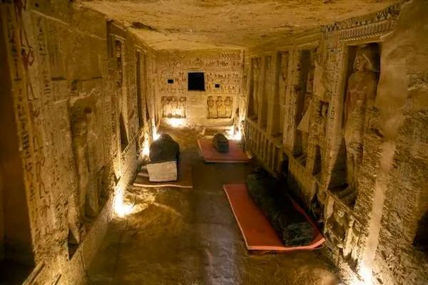 通过仪器探测,考古学家发现这里有众多寺庙埋在沙漠之下。这里甚至还有数以百万计的动物木乃伊,包括狗、猫和鸟,2019年,一批眼镜蛇、鳄鱼、猫,甚至还有两只幼狮木乃伊的发现震动了考古界。这些动物木乃伊都是当年的祭品。