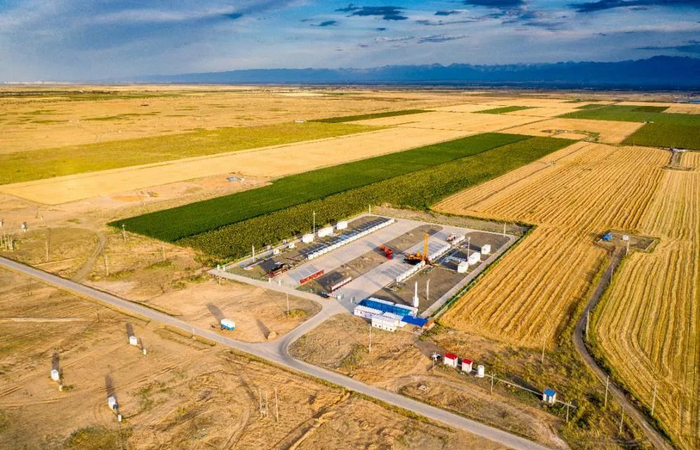 新疆油田吉庆油田作业区位于吉木萨尔县,和新疆油田大部分的开发井处于沙漠或戈壁不同,吉庆油田的油井周围大多是耕地和农田。为了尽可能减少占用耕地,实现绿色开发,吉庆油田首创了大平台集中智能多级控制技术,创新了地面工艺集成优化技术,解决了石油开发与城镇林地草地的矛盾问题。