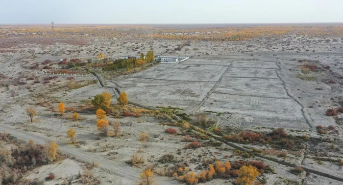 胡杨林边缘的吉拉克站,退出前和退出后的对比