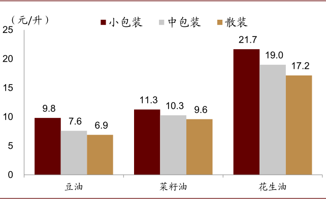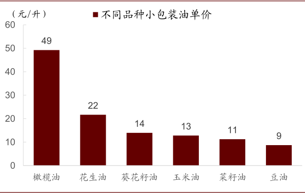 图表: 小包装油中,不同油种单价比较