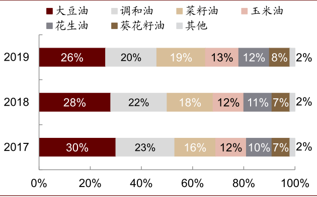 图表: 小包装食用油油种销售量份额变化