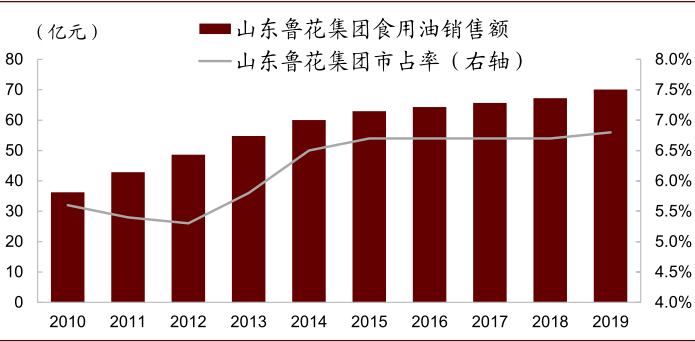 图表: 鲁花集团食用油销售额及市占率