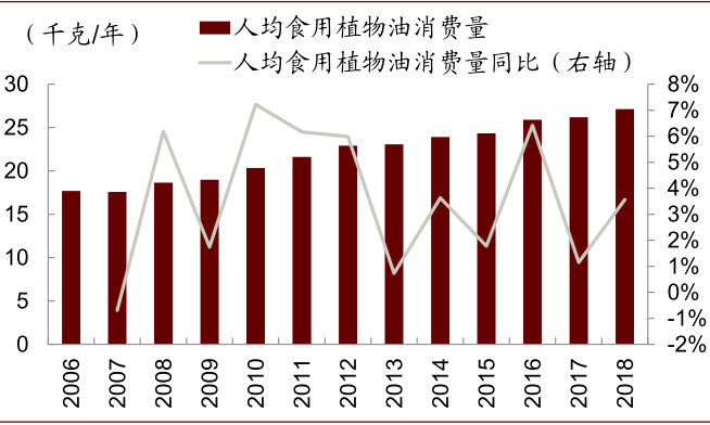 图表: 中国人均食用植物油消费量趋势