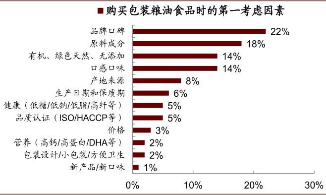 图表: 消费者购买包装粮油食品时的考虑因素