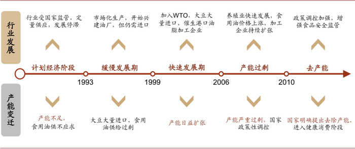 图表: 食用油行业发展历史及产能变化