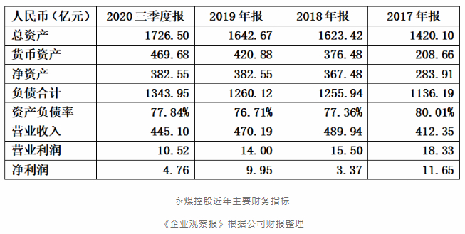 “永煤控股一直在向资本市场和投资者释放公司资质良好的信号。”国内某大型券商机构人士对《企业观察报》说,永煤控股发布的2020年前三季度业绩报告显示,公司尚有470亿元货币资产,并在10月份发行了一只10亿元规模的融资中票。就在债券到期一周前,永煤控股还表示有资金兑付债券。