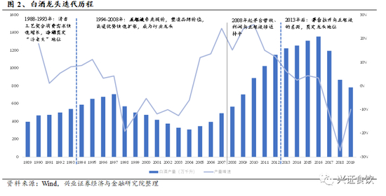1、白酒龙头的更迭是时代变革下产业核心竞争力的变迁