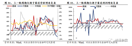 从上一轮白酒周期上市公司表现来看,存在较为明显的业绩启动节奏上的差异。1)2003-2005年以茅五泸为代表的高端酒率先崛起,期间茅台、五粮液业绩一直稳定增长,泸州老窖国窖1573在2005年开始放量,2006年推行柒泉模式。2)2005年起中低档酒迎来一波小高潮,以徽酒为代表的营销模式创新推动业绩增长,如金种子深耕县级市场,通过渠道拦截、差异化的区域和价格定位,享受行业发展红利。3)2010年起次高端最后发力、增速亮眼,由于茅五泸批价不断上行,中档和高端之间价格隔离足够宽,次高端逐渐成为一个新的子版块,其中酒鬼酒、舍得最受益。