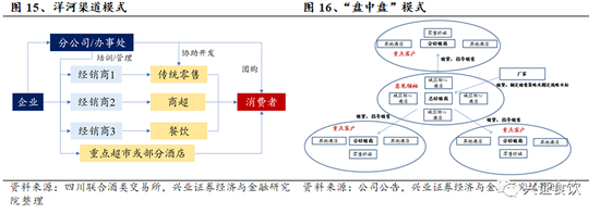 “盘中盘”:在中高端白酒导入阶段,采用“盘中盘”模式重点开发核心酒店,提升核心消费者对公司产品的认可。该模式来自90年代末的口子窖,通过区域总经销商在重点城市的中、高档酒店开展营销活动,使产品触及、抓住具有高消费能力和高社会影响力的核心消费人群,进而以酒店小盘带动市场大盘。2002-2003年洋河运用酒店盘中盘模式走出行业调整期的困境,但随着酒店终端费用不断提升、消费者自带酒水现象严重,传统的“酒店盘中盘”逐渐失效,洋河顺势将其改进为以“团购公关”为核心思想的“消费者盘中盘”。