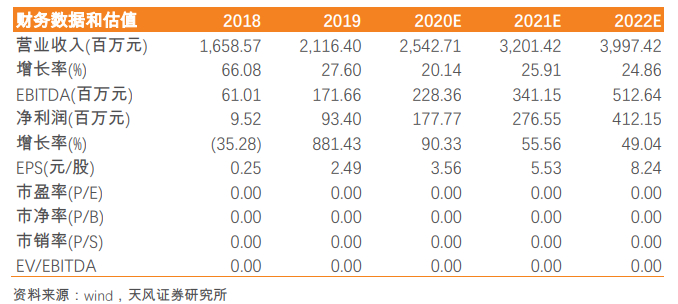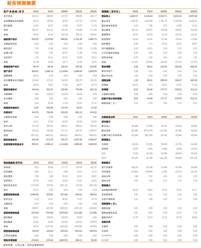随着国内外疫情得到控制,上游产能逐渐恢复,公司收入端增速有望加快,我们预计公司20-22年收入规模25.4、32.0、40.0亿元,增速为20%、26%、25%,净利润为1.8、2.8、4.1亿元,增速为90%、56%、49%;给予公司合理估值区间为2021年30-40倍PE,对应2021年83-111亿元市值, 对应合理价格区间为166-221元/股。