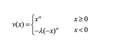 其中x,y为不同的结果,v(x)和v(y)为决策者主观感受所形成的价值,即价值函数,p,q 为不同结果发生的概率, π( p)和π (q)是概率评价性的单调增函数,被称为决策权重。价值函数和决策权重的乘积累加就是前景理论中的期望价值V。