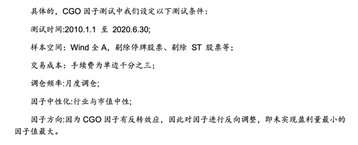 首先我们探究了 CGO 因子与现有的风格因子之间的相关性,选取比较有代表性的 Barra 风格因子,包括Beta、Earning、Growth、 Leverage、Liquidity、Momentum、 Nonlinear_Size、Size、Value 和 Volatility 因子这十个比较有代表性的风格因子。计算 CGO 因子与这十个风格因子的因子收益相关性可知,CGO 因子与大部分现有的风格因子之间的相 关性比较低,其中与 Momentum 相关性稍大,达到-0.6,说明 CGO 因子与短期反转因子之间 相关性较高,即说明 CGO 因子具有反转效应,而我们在后续也进一步测试了剔除了短期反转 因子之后因子的表现。