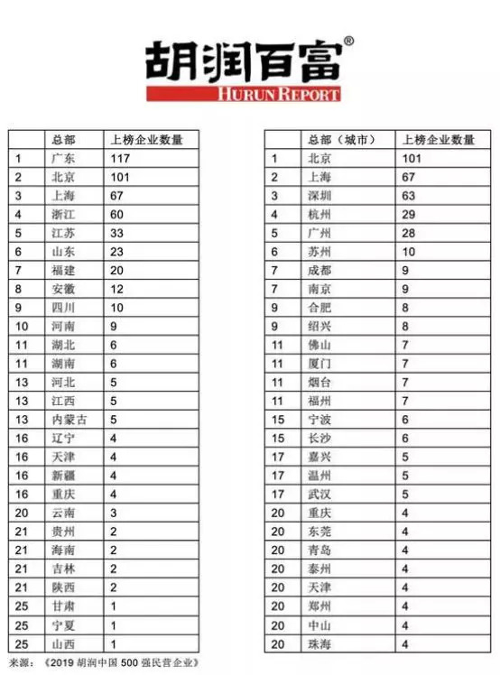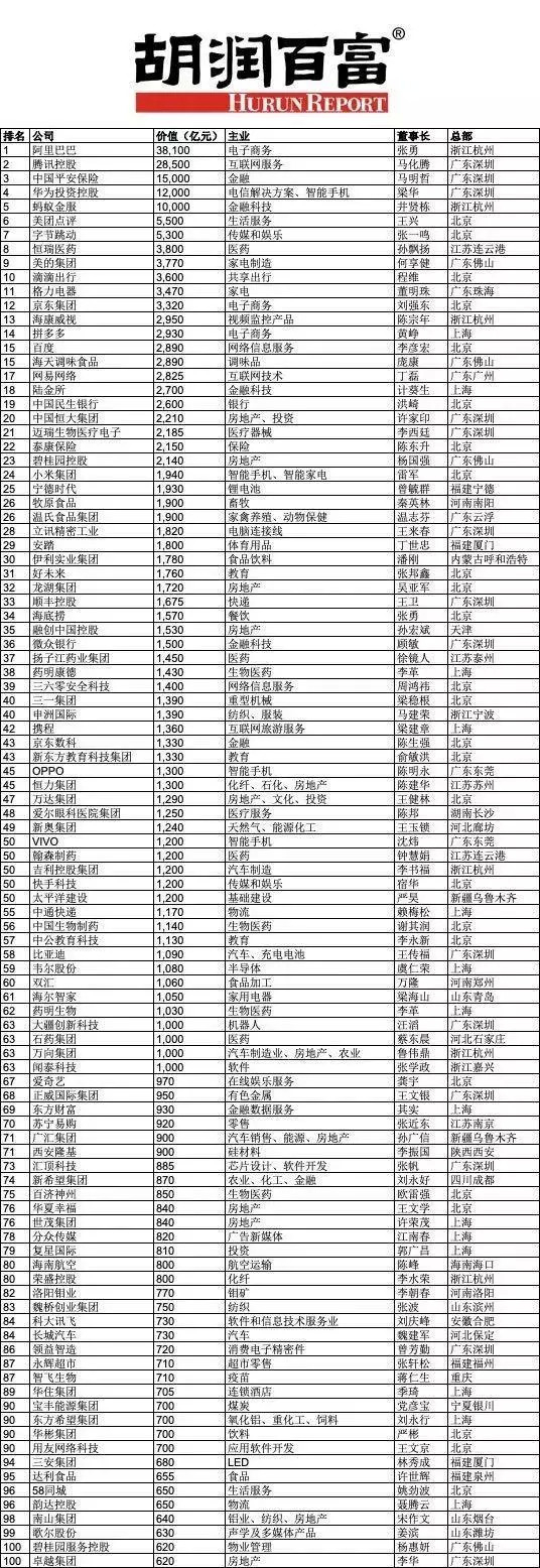 1月9日消息,胡润研究院发布《2019胡润中国500强民营企业》榜单,列出中国500强本土民营企业,按照企业市值或估值进行排名。