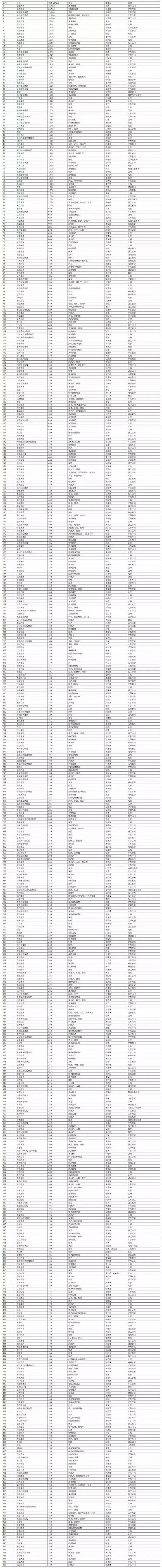 从行业来看,500强中,涵盖新兴产业的公司达238家,占比47%,接近一半,以阿里巴巴和腾讯为首。“新兴产业”涵盖节能环保、新兴信息产业、生物产业、新能源、新能源汽车、高端装备制造业和新材料。传统行业中,房地产占比最高,其次是金融和食品饮料行业。